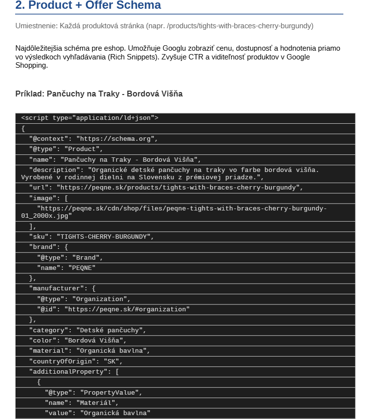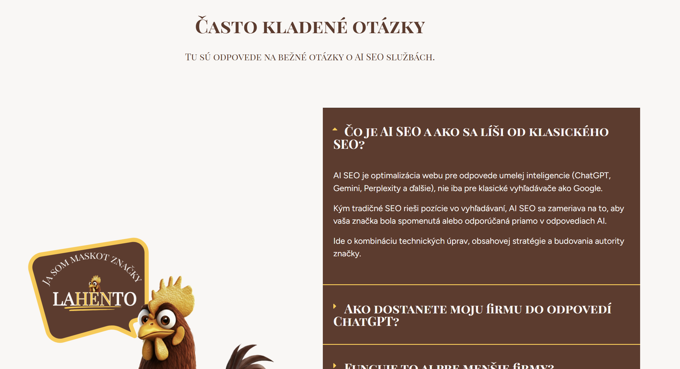 Tu je príklad ukážka pár úprav ktoré pre AI SEO je potrebné na stránke vykonať a ktoré robíme aj my pre tvoju značku.