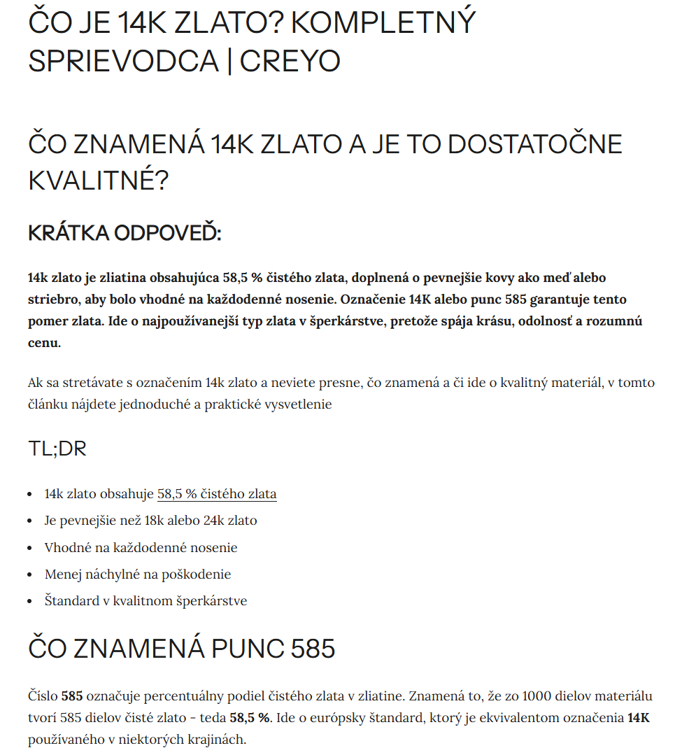 Creyo je e-shop so zlatými šperkami. Jeho konkurencia (napr. veľké etablované značky) sú na trhu dlhé roky, majú rozsiahlu históriu, množstvo zmienok a recenzií naprieč internetom.